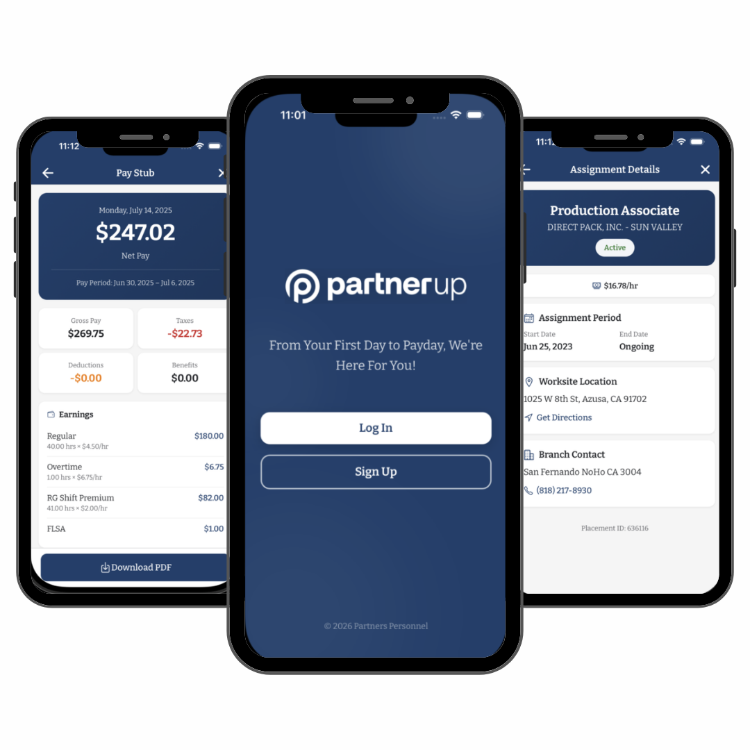 The new PartnerUp app allows associates to seamlessly browse and apply for open job opportunities, access both current and previous assignment details, view pay history and download pay stubs, and utilize one-tap map directions to worksites, placing essential employment tools directly at their fingertips.